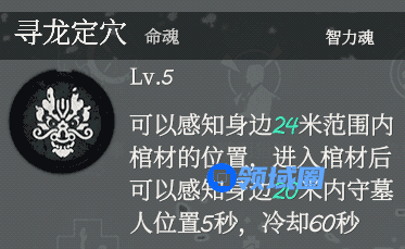 寻龙定穴是感知棺材位置的,棺材中可以搜到空水晶、雪灵芝、古墓烛台、古香炉等一系列古墓中自带的道具。进入棺材后还可以感知周围的守墓人,在守墓人来的时候,可以及时出棺,避免被拽出来。