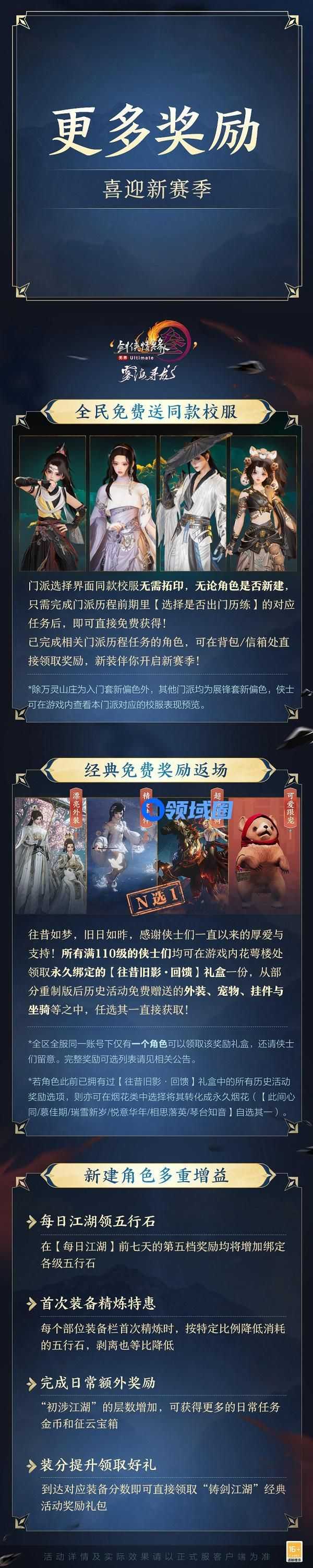 新赛季第一天上线心茫然?先打开花萼楼领新资料片的第一份奖励吧!为了答谢侠士们在竞技大师赛期间的理解和支持,执行制作人承诺的补偿福利今日发放!在迎接新篇章的时刻,回眸细数过往点滴,岁月如梭,往昔如梦,经典免费奖励感恩返场等你挑选!
