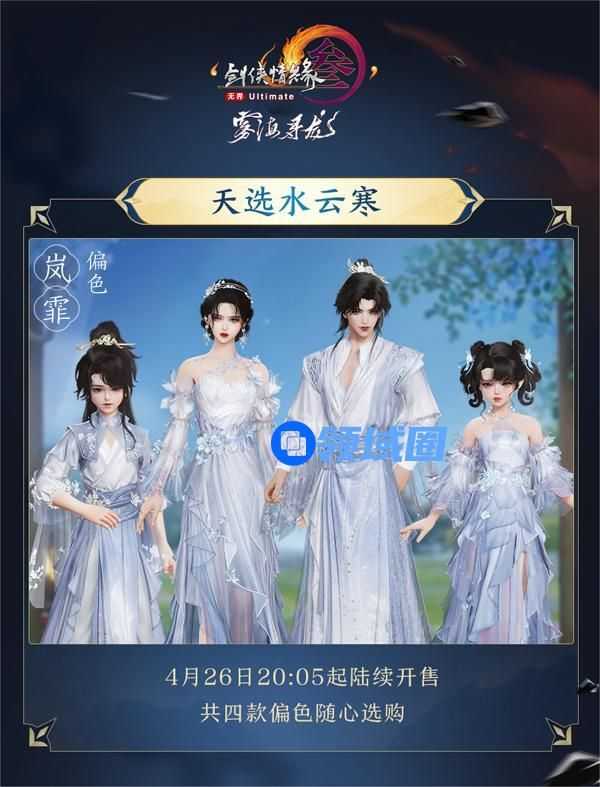 水净清萧,云凝白苹,全新天选计划系列外装新品“天选水云寒”和特别限定版“江湖行记”同步登场,积分回馈等活动特惠开启,与你约定春夏之交!