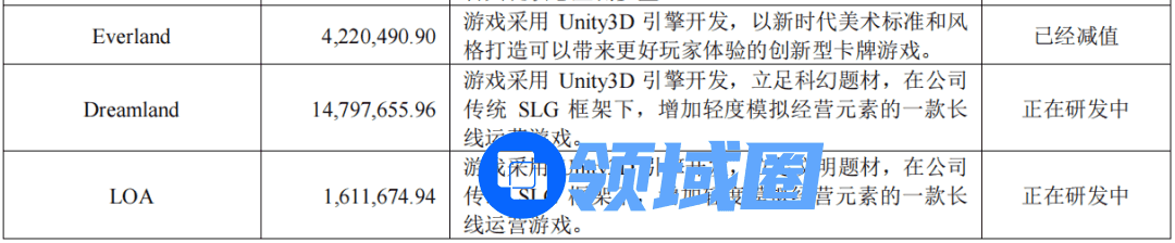其中,《代号Everland》的项目状态由半年报时的“研发中”变更为“已减值”。