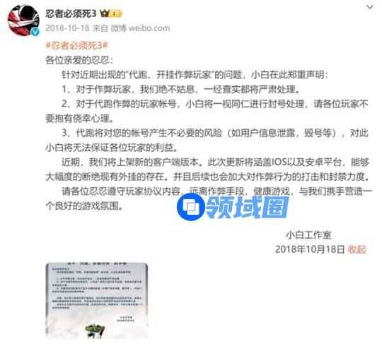 (一则2018年游戏官方发布的外挂打击)
