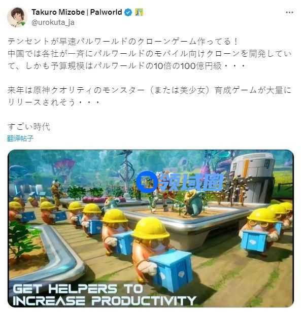 昨日,《幻兽帕鲁》的社长发推称:“腾讯正在制作类似《幻兽帕鲁》的游戏,在中国已经有许多开发商也在开发类似的手游,预算高达100亿日元,几乎是《幻兽帕鲁》的十倍之多。明年将会出现大量《原神》品质的怪物培养(或美少女)游戏,真是了不起的时代。”