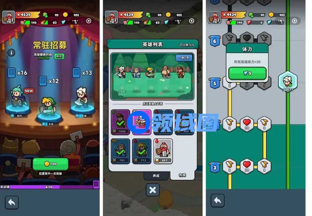从玩法上不难看出,该游戏的操作门槛非常低,玩家只需不时选择游戏技能,对英雄进行招募和升级,即可在挂机过程中,享受收割的爽感和养成的趣味。