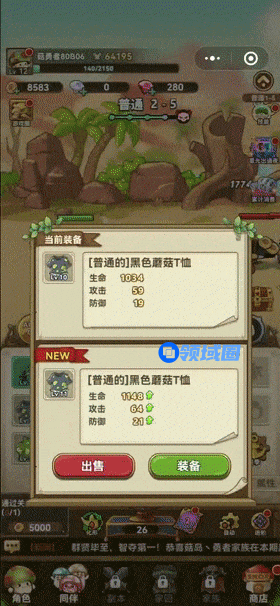 游戏主界面也可被看做上下独立的两个部分,下面是“开箱子”模块,用于推进角色养成进度,上面是“史莱姆like”的战斗模块,主要承担了养成验证的功能。