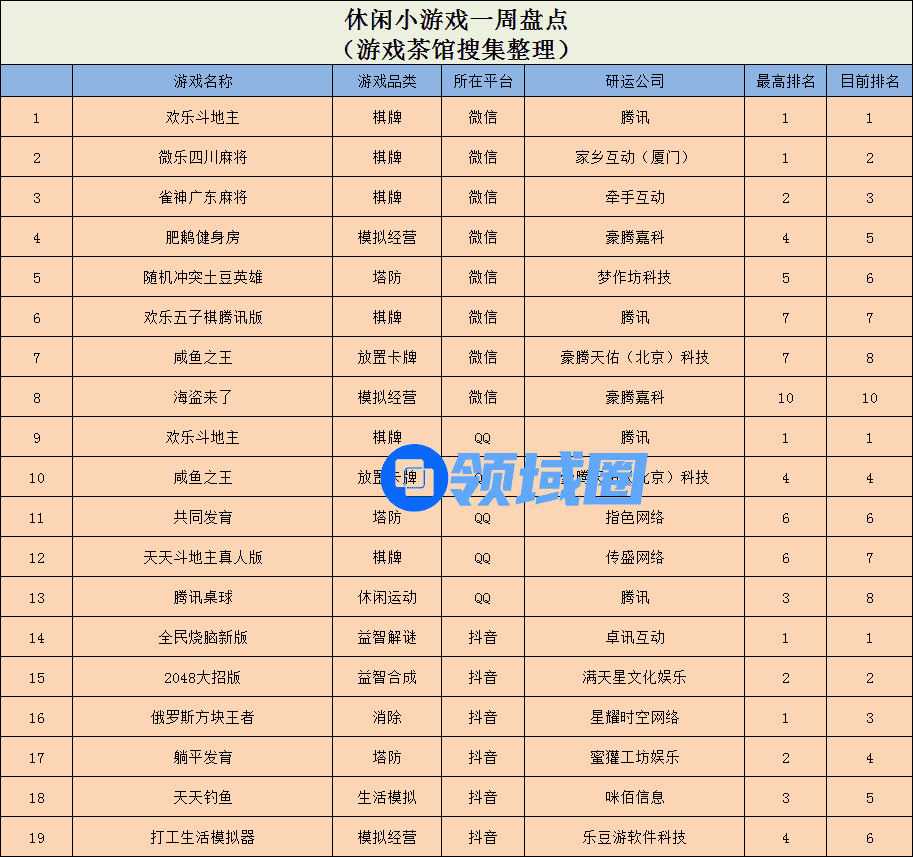 休闲小游戏:棋牌囊括TOP3,《欢乐斗地主》包揽双榜魁首