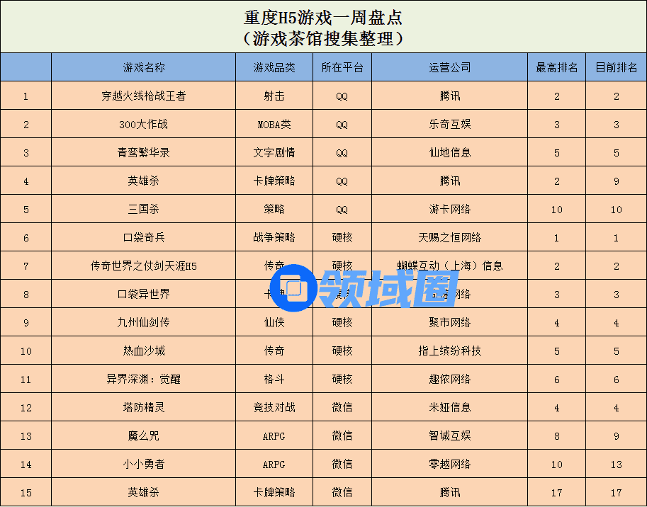 重度H5游戏:《口袋奇兵》持续稳坐榜首,《英雄杀》齐登双榜