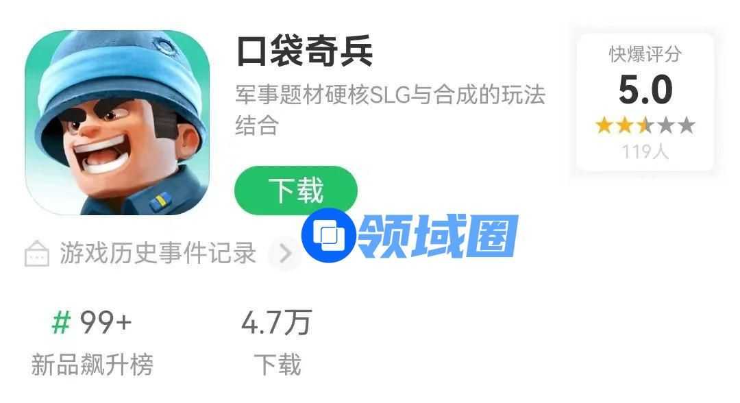 在硬核小游戏榜单中,战争策略游戏《口袋奇兵》连续第三周稳坐硬核小游戏榜单的榜首位置,同时,蝴蝶互动(上海)信息的传奇类游戏《传奇世界之仗剑天涯H5》和奇速网络的卡牌游戏《口袋异世界》当前分别位列硬核重度小游戏榜单第2和第3名。其中,《口袋奇兵》自上线之后便一直在多平台、多地区保持着超高的热度,当前该游戏在TapTap上的累计下载量以达20万,在好游快爆的下载量也已近5万。