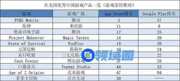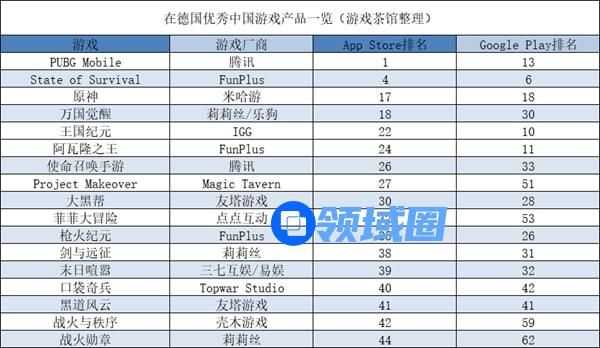 在本期榜单上,《PUBG Mobile》是国产游戏中出海美国、德国收入最高的游戏。