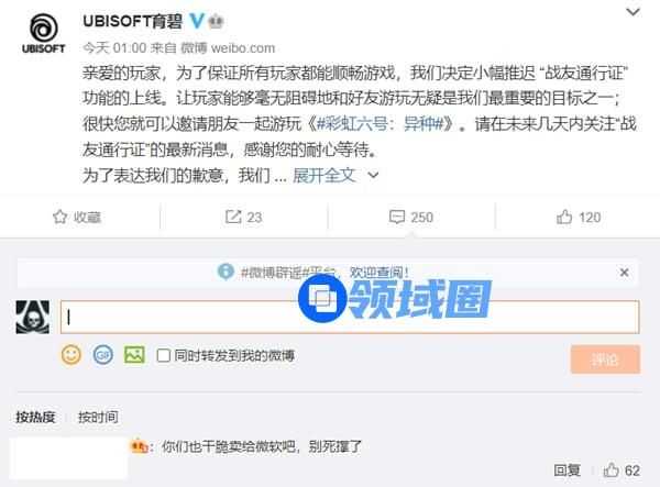 大家发现育碧市值才70亿美元,纷纷去育碧微博下面留言了
