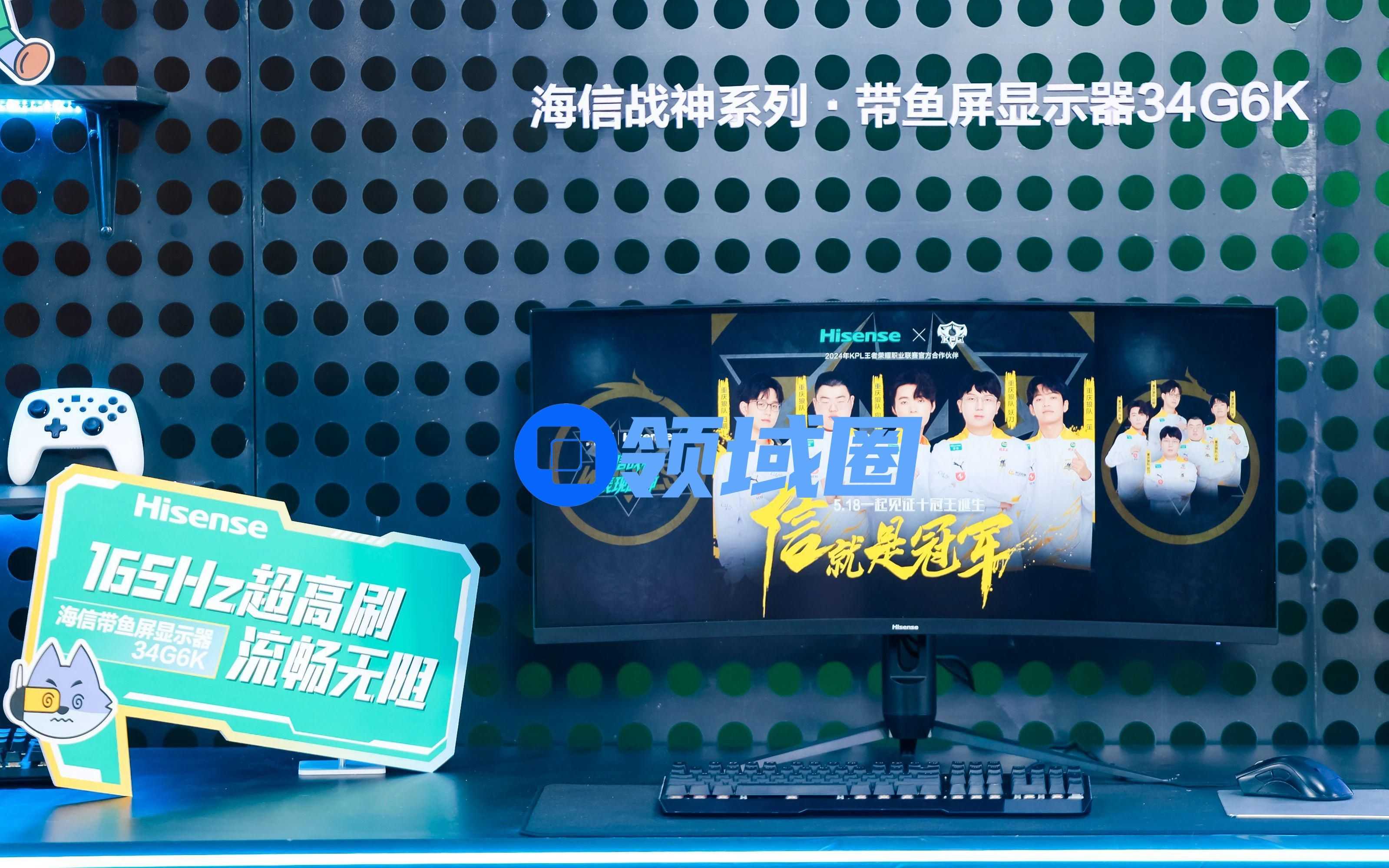 直播中,主持人“爆料”,重庆狼队的“最强辅助”还有另一位“战神级选手”——海信带鱼屏显示器34G6K。它拥有1000R的黄金大曲率、165Hz超高刷、1ms疾速响应,同时采用了21:9的超宽带鱼屏设计,拓宽视野30%,让玩家们在游戏中享受无盲区的沉浸式体验。