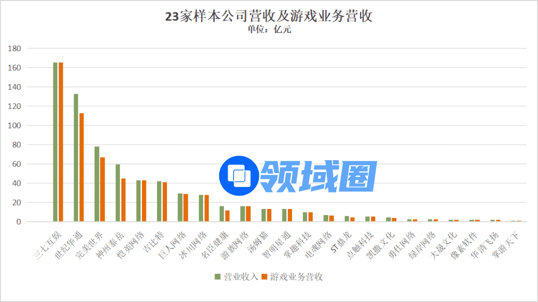 这23家公司便组成了此次的样本,具体公司名单、营收总额、游戏业务营收等情况可以参见一下表格。