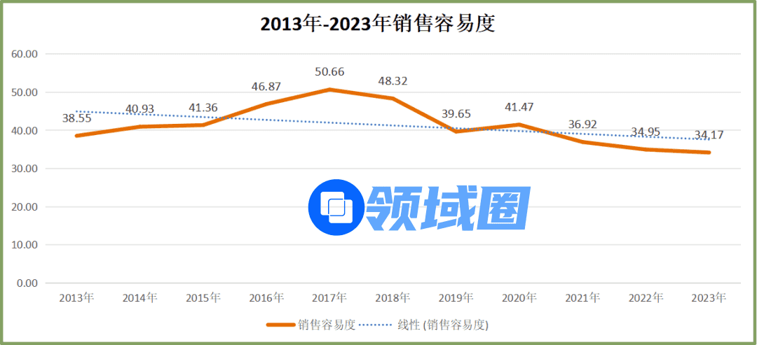 对某一个行业来说,“销售容易度”数值越大,则企业越容易卖货,市场竞争越宽松。