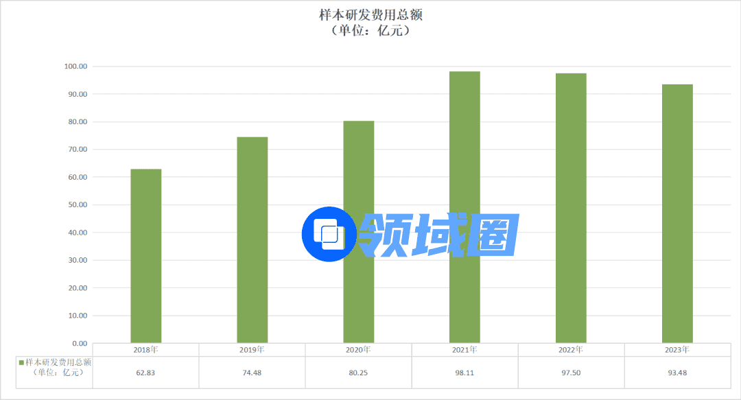 相较于2022年,研发费用数据总额上,变化不算太大。
