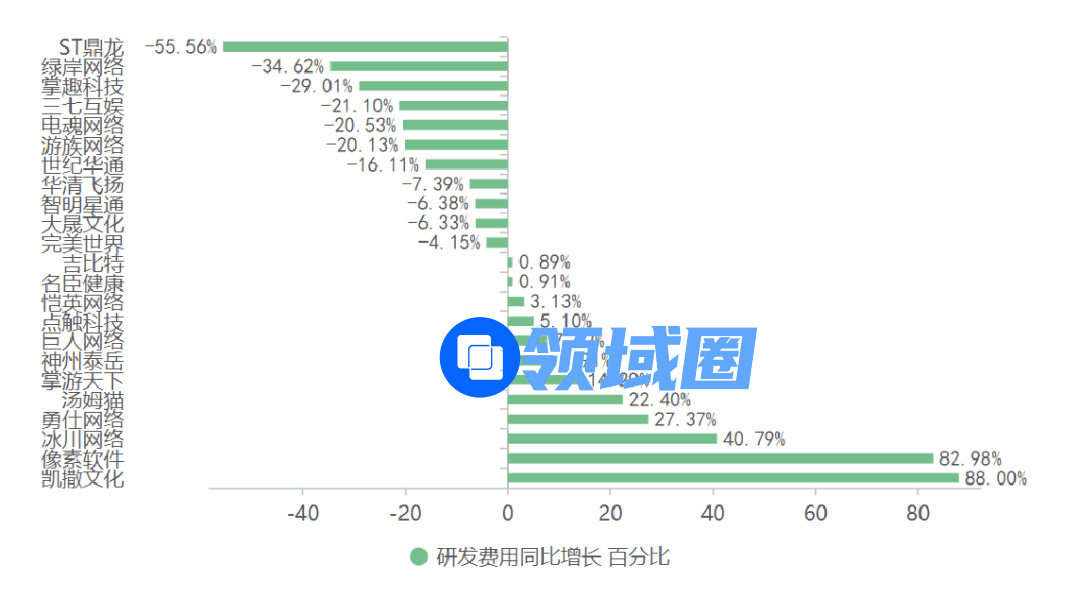 其中,增长中,变动比例前五名分别为:凯撒文化(88%),像素软件(82.98%),冰川网络(40.79%),勇仕网络(27.37%),汤姆猫(22.34%)。