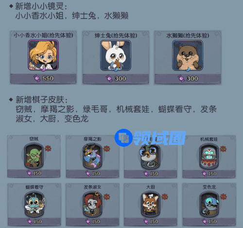 新增棋子皮肤:窃贼,摩羯之影,绿毛哥,机械套娃,蝴蝶看守,发条淑女,大厨,变色龙