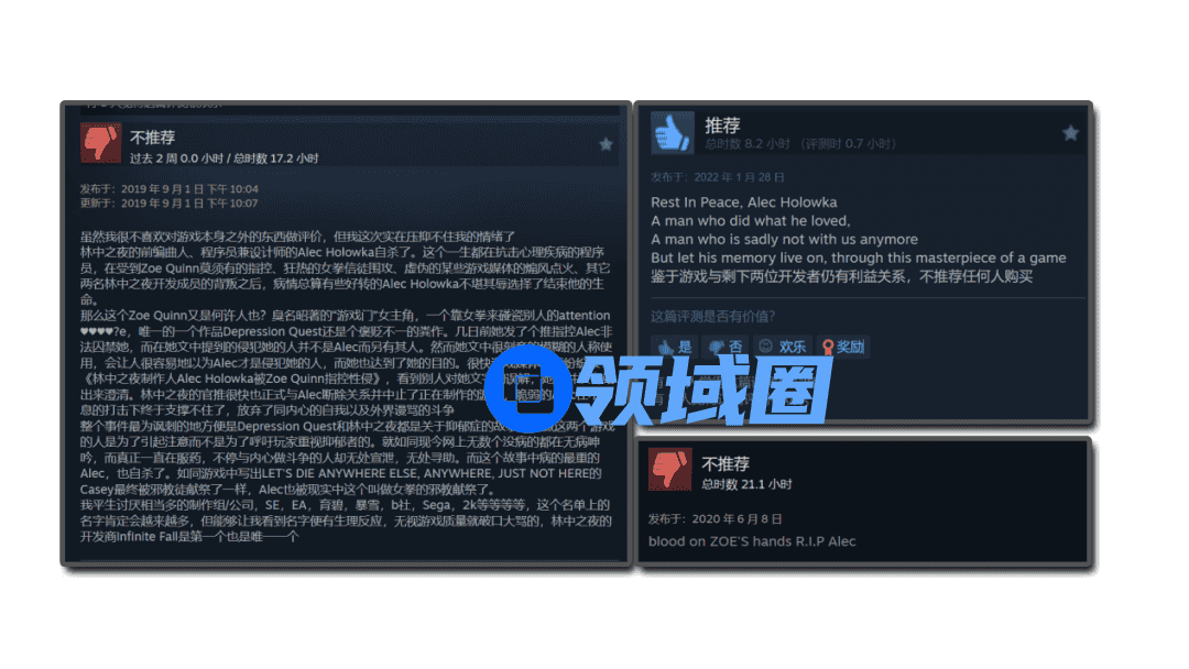 可是,遗憾的事还是发生了,2019年8月,霍洛卡被自己7年前的同居女友友佐伊指控身体和精神虐待,受当时主流舆论影响,《林中之夜》的开发团队在不确定消息来源真实性的前提下迅速将霍洛卡剔除团队撇清关系,并推迟了《林中之夜》实体版的发行计划。霍洛卡由于接受不了舆论带来的压力,在4天之后选择了轻生。他的妹妹后来在社交媒体中澄清,霍洛卡一生都在“与情绪和人格障碍作斗争”,并长年服用精神类药物。而指控者佐伊在霍洛卡自杀之后并未进一步进行澄清,只是删除了自己的社交媒体账号了事。在《林中之夜》的游戏评测中,我们能够看到许多玩家都在对亚力克·霍洛卡的故事表示遗憾。