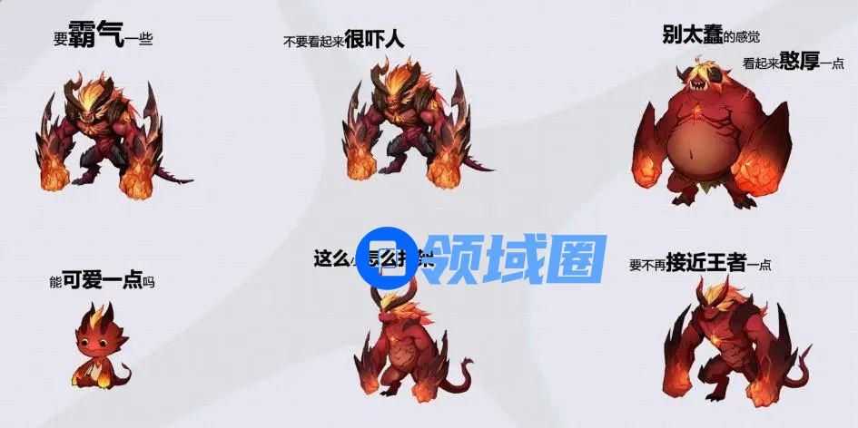 王者峡谷中的“红BUFF”攻击模式单一,直接搬运到动作游戏中并不理想。为此,破晓研发团队在创作过程中进行了多模型制作,有比较“霸气凶狠”的,有比较“憨”的,也有长得非常“可爱”的宠物形态,还有与原设计较像的版本。综合玩家反馈,团队最终选择了玩家更为熟悉的、更接近王者版本的红BUFF形象,又创新式地加入了“河道之灵”形象,稀释红BUFF作为凶兽的感觉,传递破晓中特有的亲切概念。