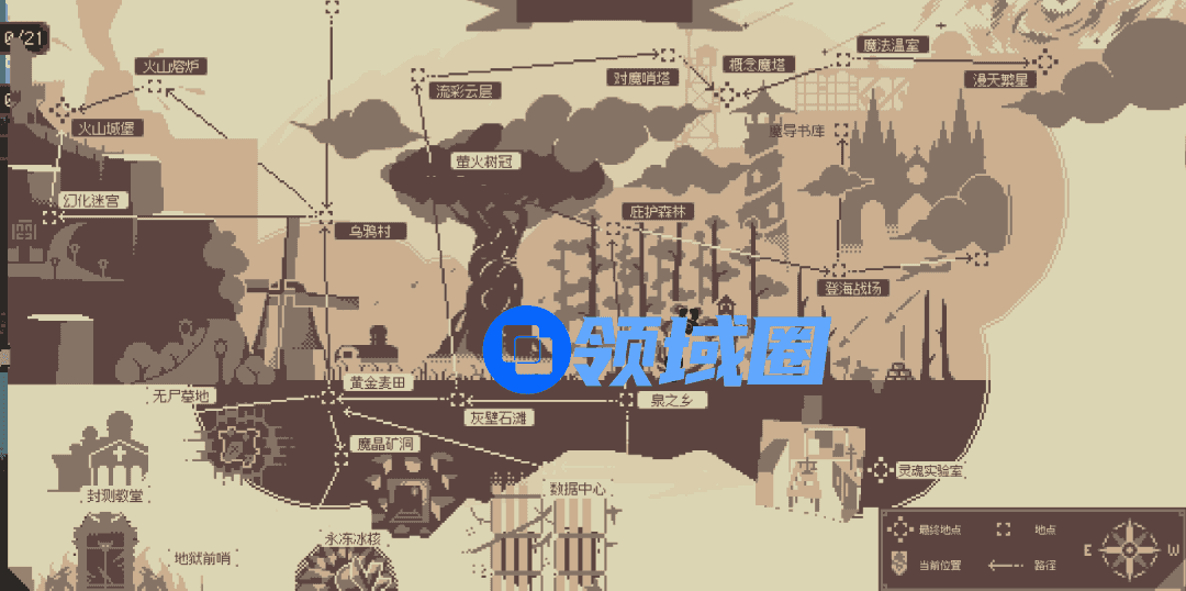 依旧是熟悉的Q萌像素小人。只是这次,主角从《互联网原住民》中被踢出群的新人,变成了在歧路之岛醒来的魔女。魔女失去了魔法与记忆,身边独留一把扫帚闯天下。