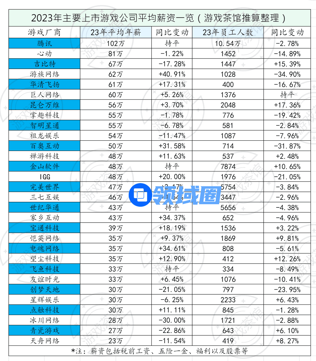 近期上市游戏厂商陆续发布2023年年报,游戏茶馆查阅了具有代表性的32家厂商年报,根据年报所披露的薪资数据,测算出平均年薪如下: