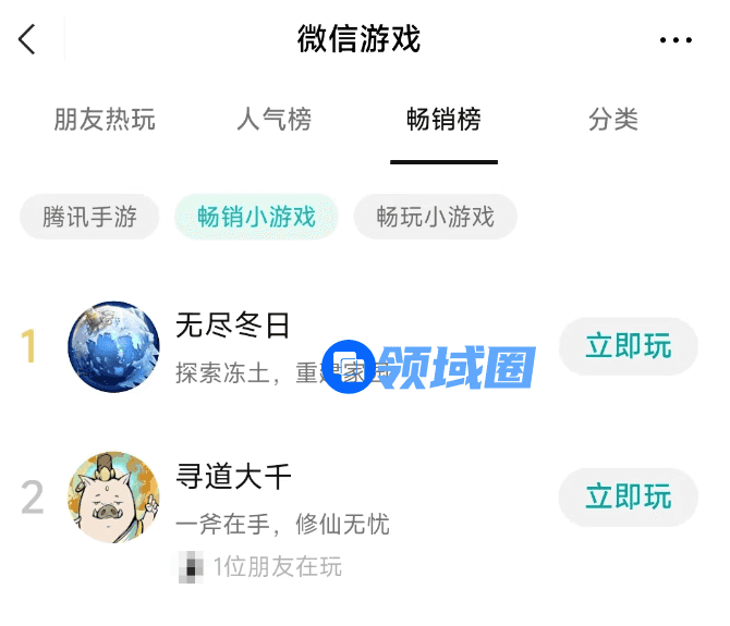 4月1日正式上线小游戏平台后,《无尽冬日》排名飞速上涨,在随后不到一个月的时间里,超越《寻道大千》等一众小游戏头部爆款,直接冲上了微信小游戏畅销榜TOP1,且至今依然稳坐TOP2。