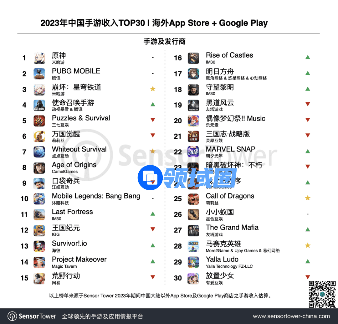 《Puzzle & Survival》最早上线于2020年8月,作为末日生存SLG赛道的后来者,该游戏通过三消+SLG的大胆融合尝试,从壳木游戏《Age of Origins》、IM30的《守望黎明》和FunPlus的《State of Survival》等一众同类爆款老游的围剿中成功突围,在拿下美国、日本等T1重点市场的同时,带领三七互娱正式迈进了出海掘金的高速阶段。自此以后,我们便常能在出海游戏厂商收入榜单TOP3中看到三七互娱的身影,正因如此,该游戏常被视作三七互娱出海的里程碑产品。