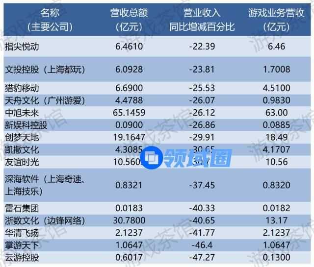 而在整体营收同比下跌的公司中,不乏游戏行业的老牌大厂,比如,吉比特,同比下跌19.02%;指尖跃动,同比下跌22.39%;中旭未来同比下跌26.12%。
