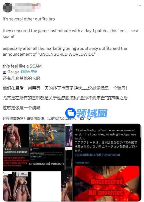 不少海外老哥对于这种双标行为纷纷吐槽:“索尼可以忍受的了《博德之门3》中的日熊,能接受《最后生还者2》中的实操,竟然不能接受《剑星》里面的几套衣服,简直离谱。”
