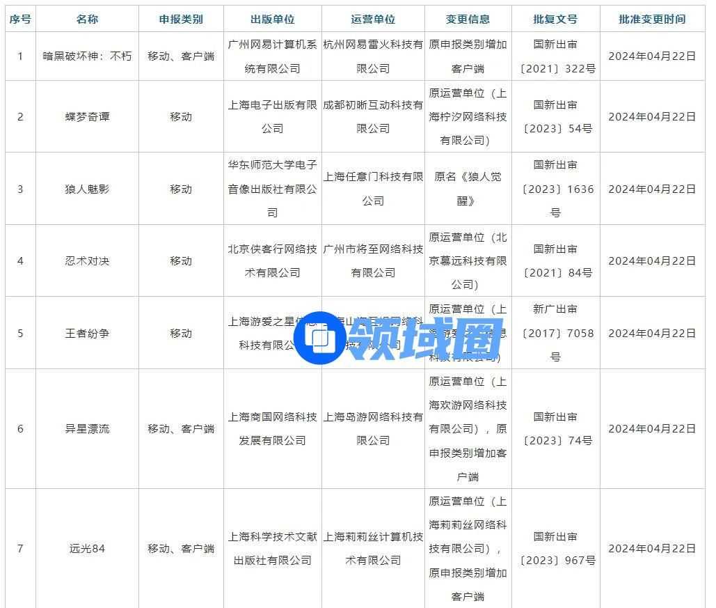 今日,国家版署发布了4月新游过审版号,共计95款。其中,移动游戏94款、客户端游戏7款,游戏机(PS)游戏1款。
