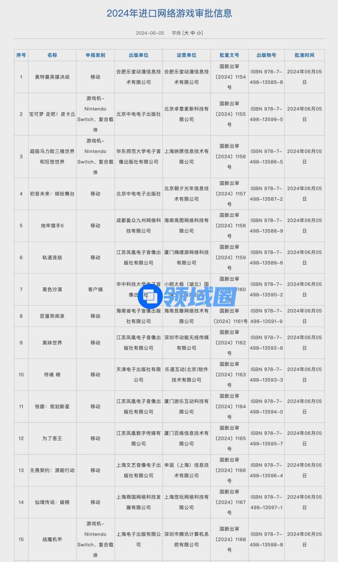 今(5)日,国家新闻出版署公布今年第三批进口网络游戏版号,共包含15款游戏,分别为11款移动游戏、3款游戏机及复合载体游戏和1款客户端游戏。《黑色沙漠》《初音未来:缤纷舞台》《无畏契约:源能行动》《超级马力欧三位世界和狂怒世界》《宝可梦 走吧!皮卡丘》在列。