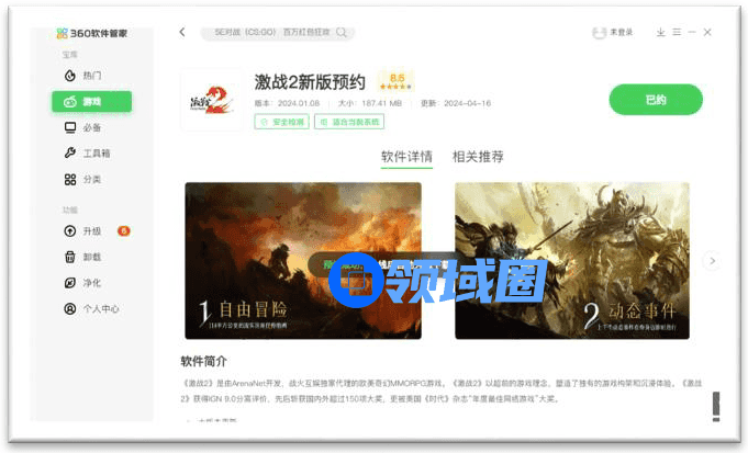 比如知名奇幻RPG游戏《激战2》在刚刚结束不久的“2024超级冒险节”活动期间,就与软件管家达成了深度的合作。在活动开始之前,该游戏就入驻了360游戏应用分发平台,并通过快资讯软文推送、软件管家游戏专区推荐位、游戏频道要闻展现等高质量资源,对游戏和活动进行了集中的预热推广,引导兴趣玩家快速完成预约,为活动的火热展开完成了前期蓄水。
