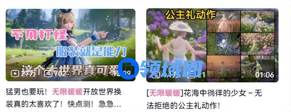 通过加入开放世界玩法,《无限暖暖》在首测后获得了众多玩家好评,暖暖提着裙子在不同场景转圈的视频在B站获得较高播放量。