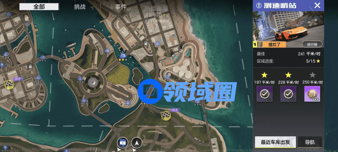 比如,如果玩家想要去打排位赛,可以直接去集会点报名,还可以在赛道点直接开始相应的赛事,同时这个世界中提供了非常多的玩法和挑战,像是测速点,漂移点、飞跃点、收集解密等等,这些都是直接铺在路上,在同一个世界中,玩家可以随时挑战。