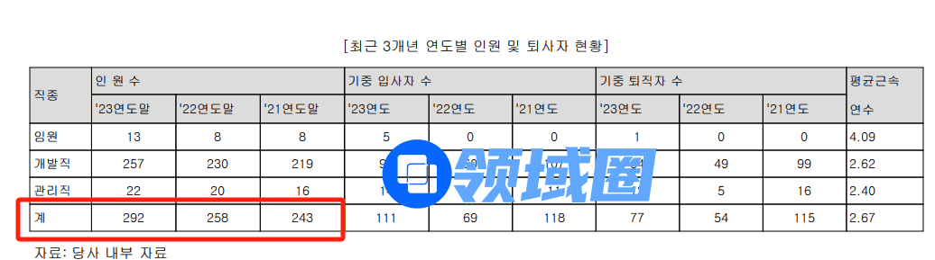 2021年末至2023年末,Shift up员工人数分别为243人、258人、292人。其中2023年,开发人员257名,占比88%。