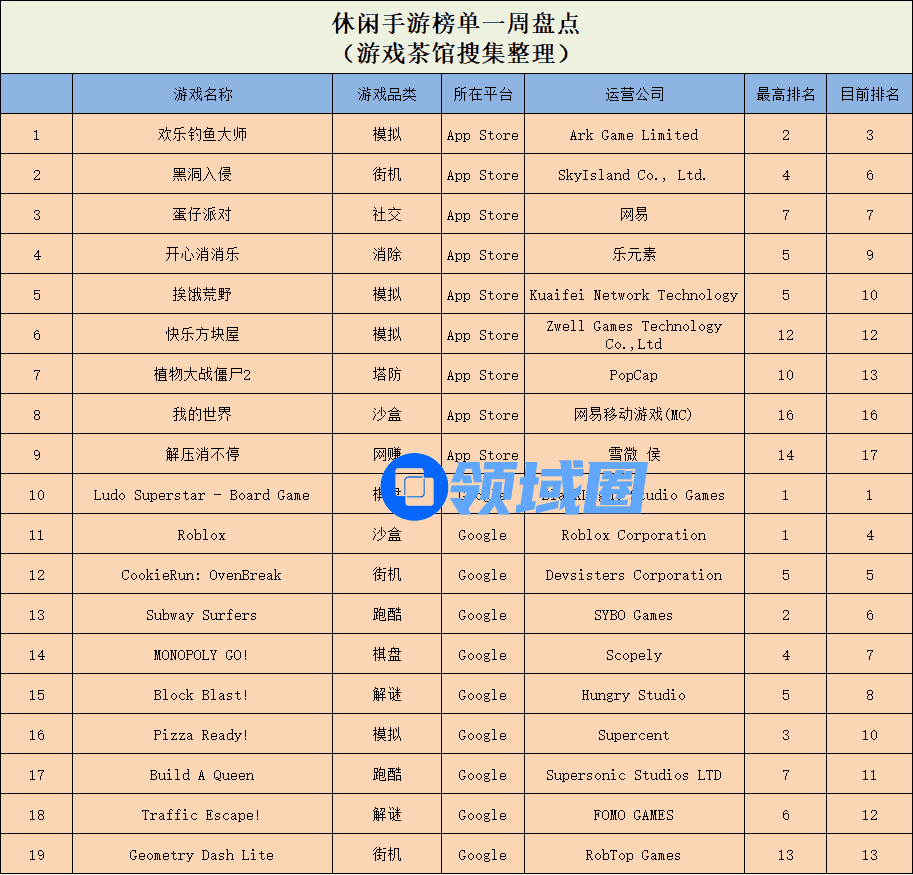 休闲手游:钓鱼热持续,Ludo游戏空降TOP1