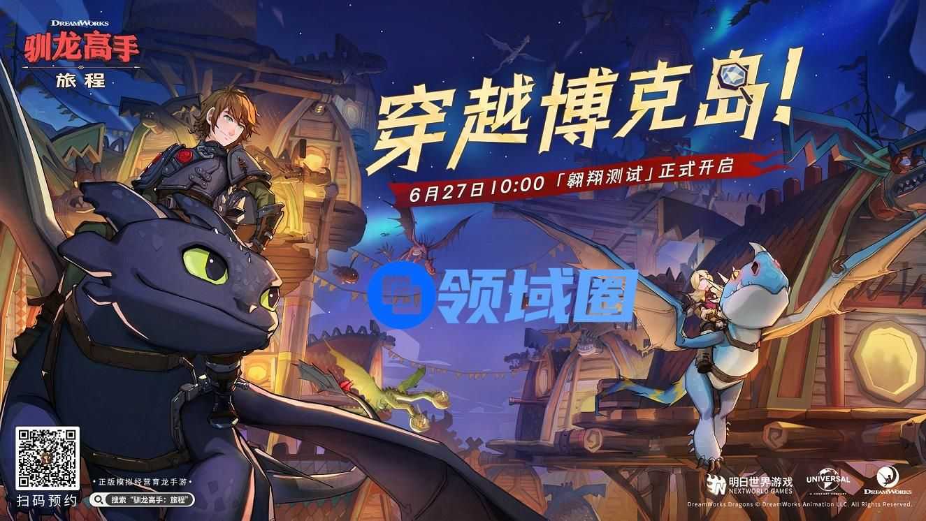展翅高飞,自由翱翔,由环球产品与消费体验部门授权,明日世界自研并发行的正版模拟经营育龙手游《驯龙高手:旅程》将于6月27日开启「翱翔测试」,届时博克岛入口将限时开启,各位龙骑手可在6月27日10:00前往各大应用商店下载游戏参与本次测试,本次测试为安卓平台限量删档测试,名额先到先得,到达登岛阈值后自动关闭下载入口。