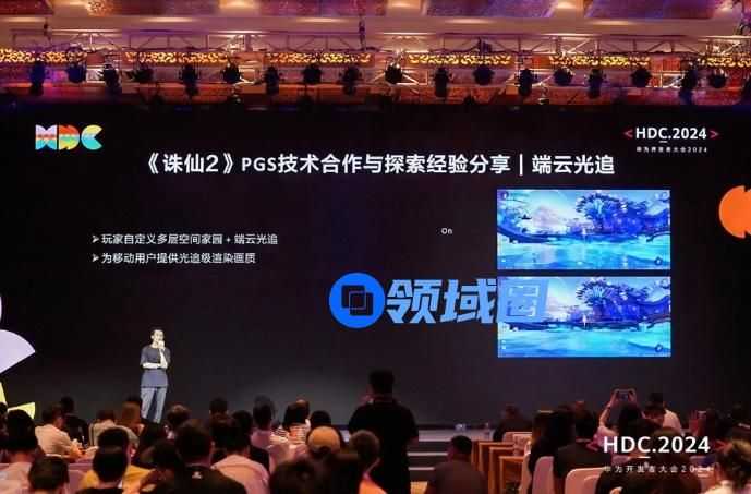完美世界《诛仙2》引擎负责人柴毅进行了PGS技术合作与探索分享。他提到,PGS 2.0为我们提供了高效的全链路开发工具和能力,《诛仙2》不但接入了超帧、超分、HiSmartPerf等性能调优技术和工具,还应用了创造性的云渲染技术,利用云侧算力为端侧提供高阶光照计算,支持超过每秒10亿条光线实时渲染,既实现把PC级光线追踪画质带入手机,又能保证游戏高性能流畅运行,打造更沉浸真实游戏体验。
