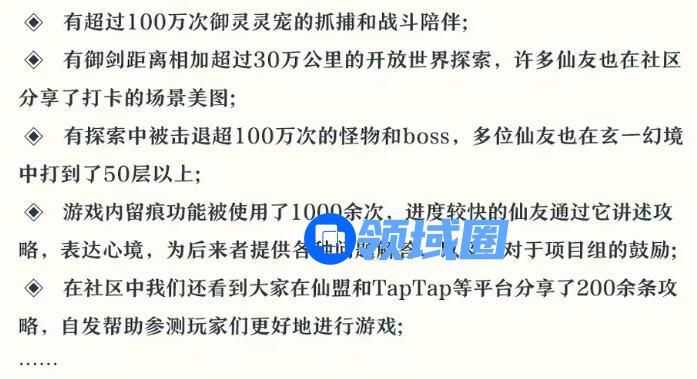 玩家们除了在游戏中尽兴体验游玩外,在网上也没有闲着,官方数据显示不少玩家通过“留痕”功能和社区分享的方式,留下了不少攻略和解答来帮助新仙友们。