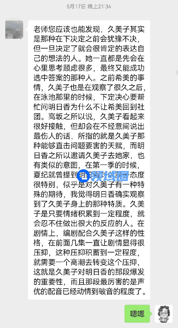 2023年9月,闫宝华有了自己的独立账号,随着逐渐敞开内心,现在她还加了观众的微信好友。她最近正在看《吹响吧!上低音号》,热心观众每期都会发千字长文补充细节。她索性和观众成为微信好友传阅文件,认为这样的交流很难得。