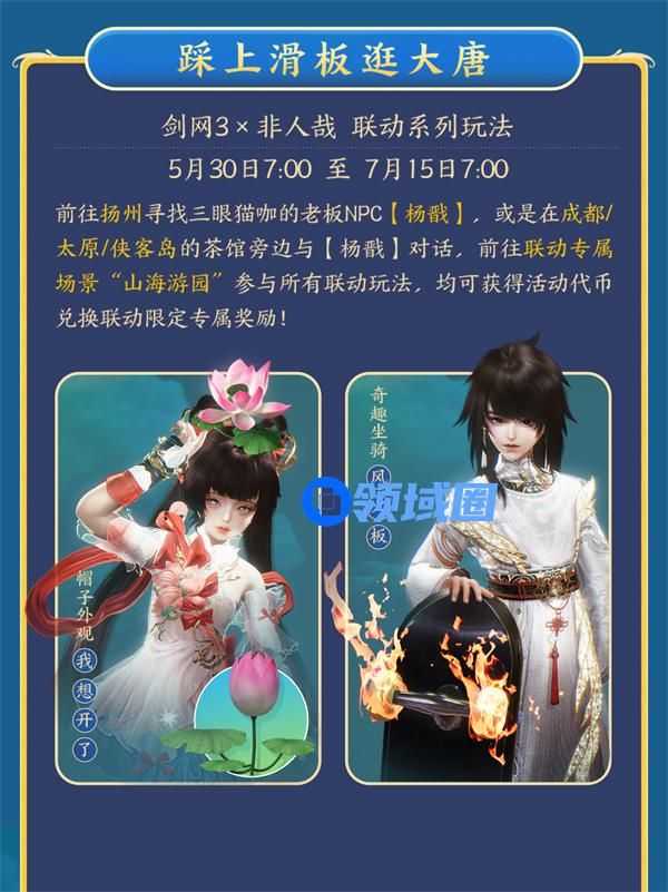 除此以外,江湖新鲜事精彩不断,还有好多有意思的活动等你来玩!奇趣坐骑、跟宠、家具和帽子等超可爱的联动奖励,打造难以忘怀的夏日记忆!