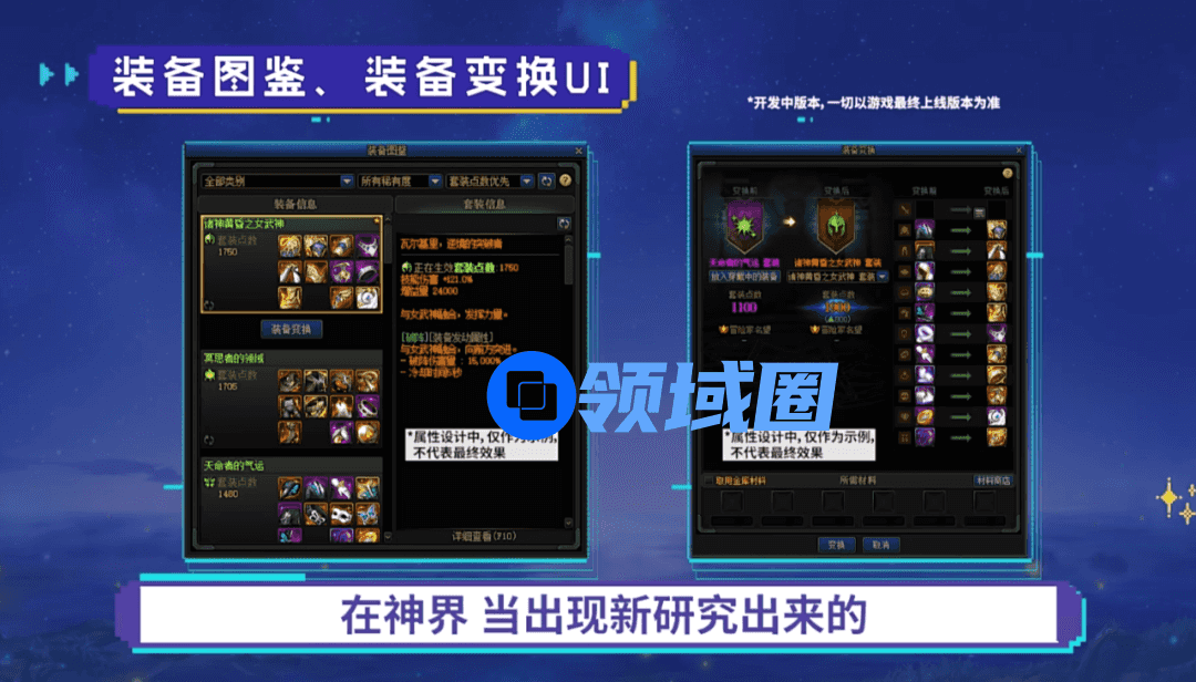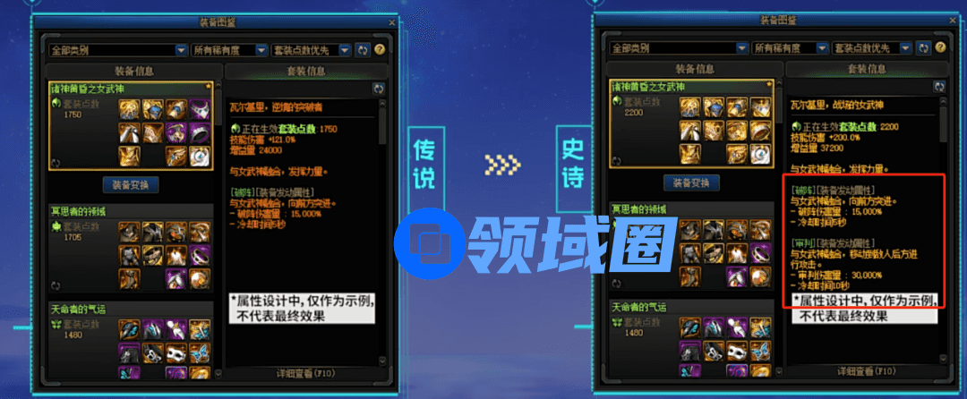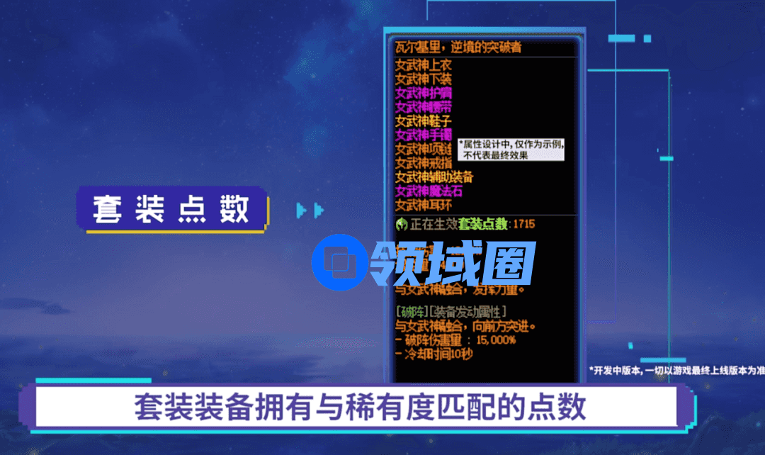 为此,即将到来的重泉新版本,删除了自定义装备,引入了一套全新的装备玩法体系。首先,新增套装点数系统,从目前官方公布的信息来看,套装的散件将会以稀有、神器、史诗等不同稀有度区分,每个稀有度的装备将会提供特定的点数,当点数达到一定的阈值,套装将会带来不同的属性提升或是特殊效果。