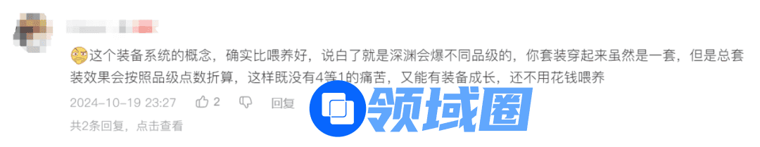 有不少老玩家看到之后,立马直言不讳表示,这个套装点数更像是传承装备的2.0玩法。不过随后就有玩家反驳,相比要凑装备的传承,这套点数系统可以从最初就能随意搭配,随着角色等级的不断提升,用更高稀有度的对应套装散件随时替换,从而每个等级阶梯都更容易带来养成的正反馈。
