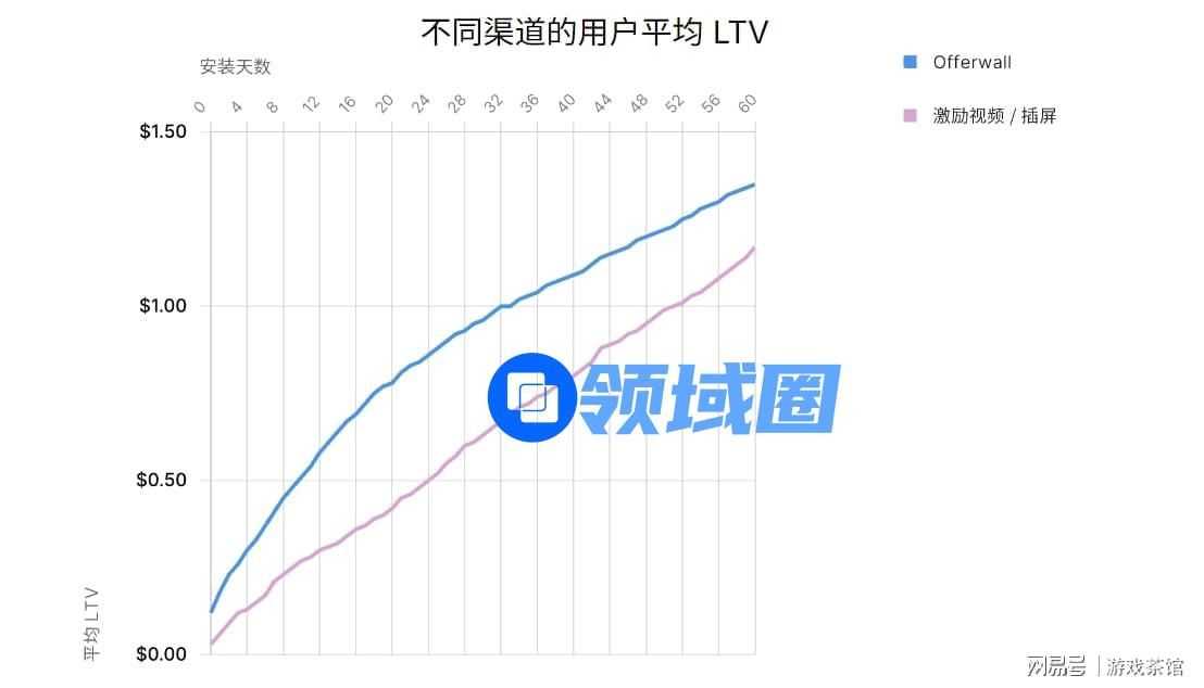 · Offerwall 获取用户留存更高。Offerwall 用户的留存率比其他广告形式高 2 - 7 倍。数据显示,相较于通过其他广告形式获取的用户,Offerwall 奖励市场获取的用户具有更深入的参与度,留存更高,LTV 增长得也更快。