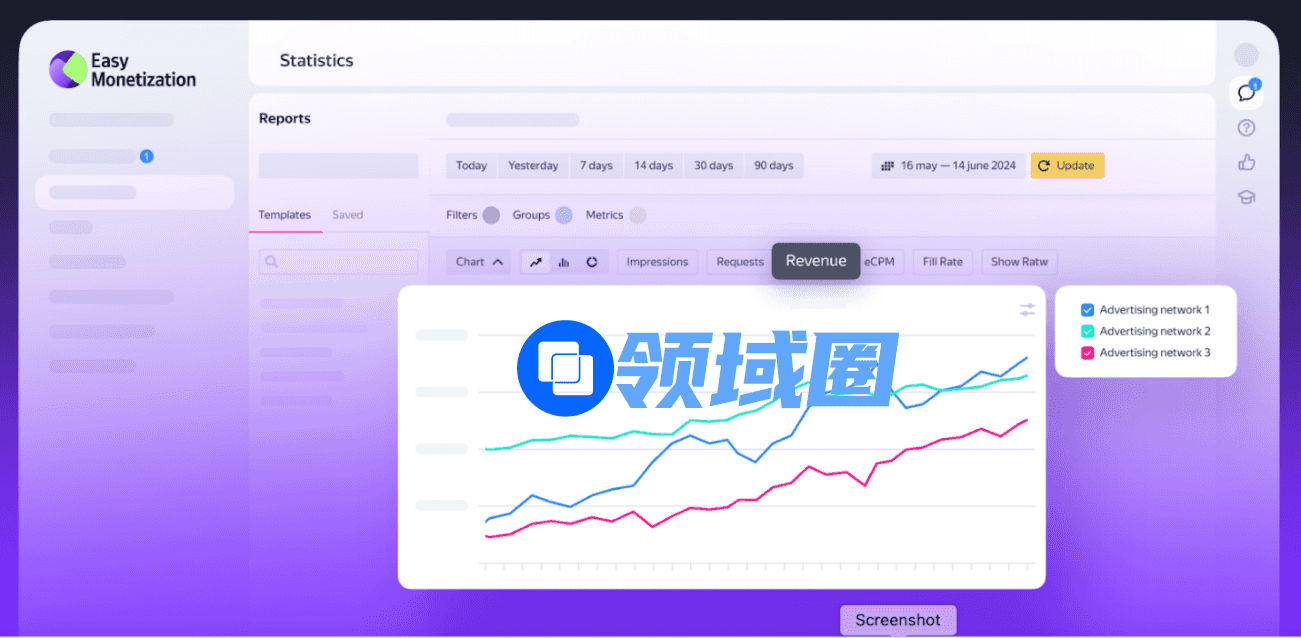 新的仪表板展示了来自广告网络及 Easy Monetization 预测的所有应用变现相关之重要信息。这意味着开发者现在可以全面了解其应用的收入情况:他们可以查看基本指标,如点击量和展示次数,以及更高级的数据,如填充率、eCPMs和收益。