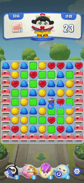 消除部分以关卡制的形式呈现,在各个普通关卡中,玩家需要在限定的步数之内,通过消除完成对应目标才可过关。