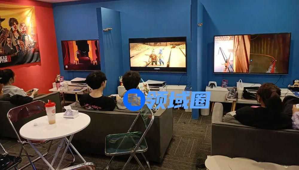 如果你在电影院候场时有留意的话,可能也会发现电影院里也多了一些共享游戏主机摊位。联想到B站上知名UP主“某天的游戏小屋”火热的开店日常,似乎主机游戏正在成为一种流行的线下娱乐,与游戏茶馆过往印象大相径庭。