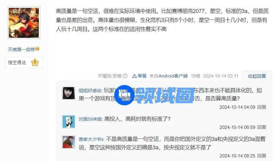 在节目播出后,许多玩家都注意到了这个措辞的变化,并在网上展开了探讨。一部分玩家认为,新定义更符合3A游戏的内核,因为强调了“质量”的重要性。如果只从开发成本、时间等客观角度来衡量一款游戏是否是3A的话,那么诸如《星鸣特工》之类空有华丽外壳的游戏就显得有些德不配位。