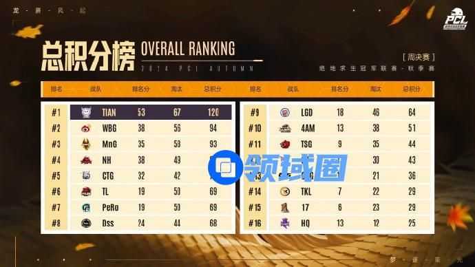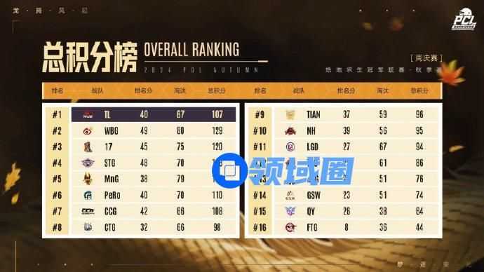 PUBG PCL2024秋季赛16强名单出炉,总冠军之夜谁能夺冠?