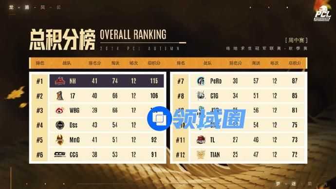 但好景不长,这股势头很快被其他战队赶上,NH战队更是凭借68个淘汰和42的排名分,拿下首周中赛榜一,力压WBG和LGD,而PeRo和MnG更是直接差点被挤出前10。