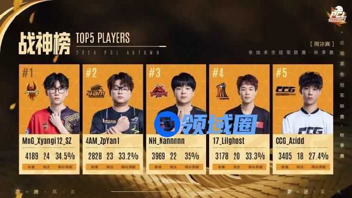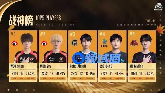 在首日比赛完成后,CTG不出意外,排名第一,MnG和WBG位列2和3。而本轮比赛后,来自4AM战队的选手ZpYan1的个人累计淘汰也终于突破1434人,位居历史总淘汰第三名。