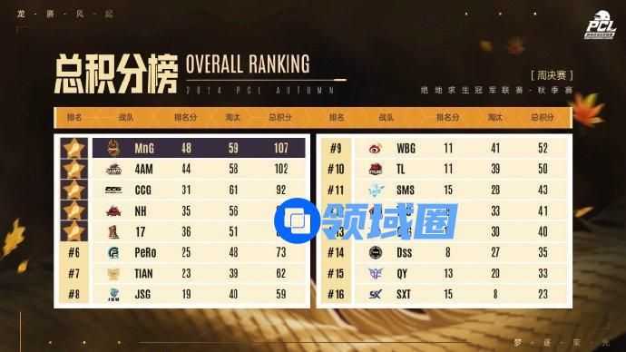 当前位置:首页>资讯>PUBG PCL2024秋季赛16强名单出炉,总冠军之夜谁能夺冠?